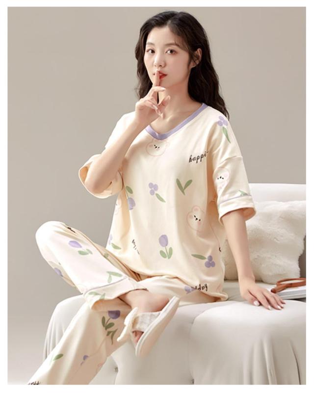 パジャマ 夏用 上下セット パジャマ コットン 夏 半袖 ポケット付き 夏 上下セット ばくね 半袖パジャマ ルームウェア パジャマ 夏 夏用パジャマ 綿 可愛いパジャマ レディース セットアップ リラックスウェア パジャマ 襟なし 夏 部屋着 大人用