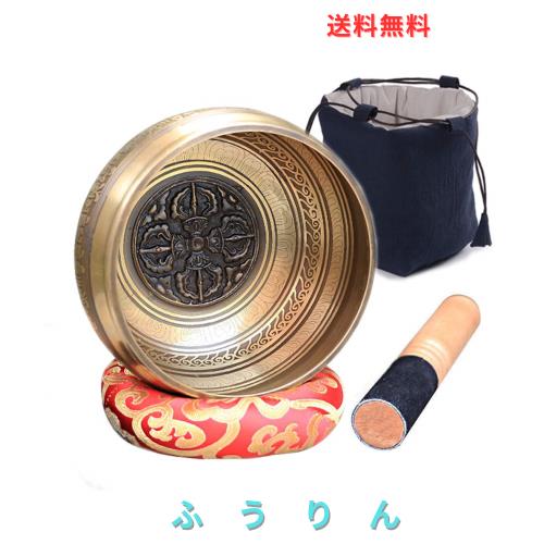 ?【初心者向け】 扱い易く丁度良いサイズ(口径11cm、高さ5cm)で、手で持てる可能、鳴らし方は棒でふちをこするだけの簡単な動作だけ。スティックが触れるフチの部分はフラットにして、鳴らしやすさも抜群です。羊の革に包まれた心棒、座布団、2層麻製の収納用袋が付属され、携帯に便利な歌うボウルセットです。