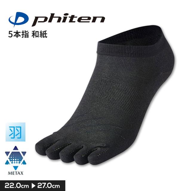ファイテン スポーツ ソックス メンズ レディース ランニング 靴下 通気性 衝撃吸収 アーチサポート ワイドヒール 運動 試合 練習 トレーニング 男性用 女性用 黒 ブラック スポーツソックス 5本指 アンクル 和紙 AL945470 AL945473 phiten