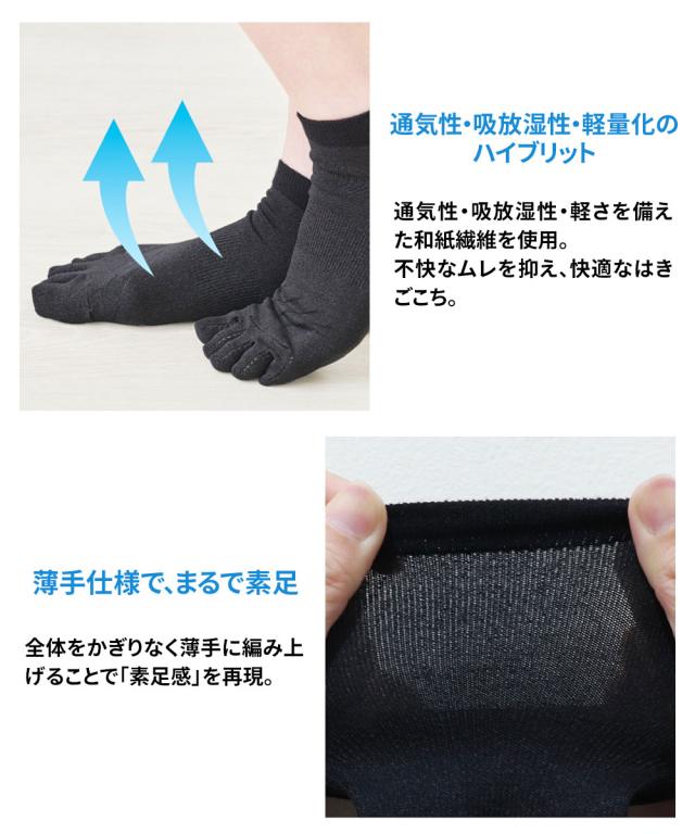 軽量和紙が可能にした「羽」のように軽い5本指ソックス