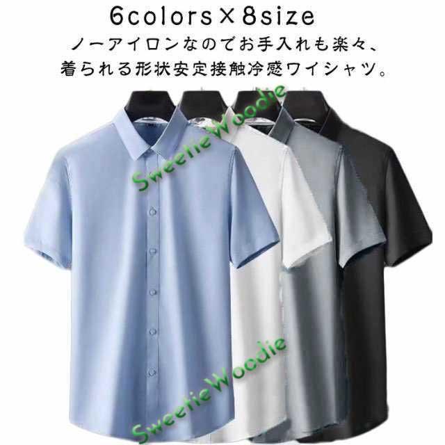 フォーマル メンズ ワイシャツ シャツ 接触冷感 半袖 ストレッチ ワイシャツ ノーアイロン シワにならない Yシャツ ビジネス 冷感 ひんやり 春 リクルート 涼しい 結婚式 お葬式 アイスシルク クールビズ ストレッチ 夏 秋 薄手 カジュアルシャツ 仕事 無地