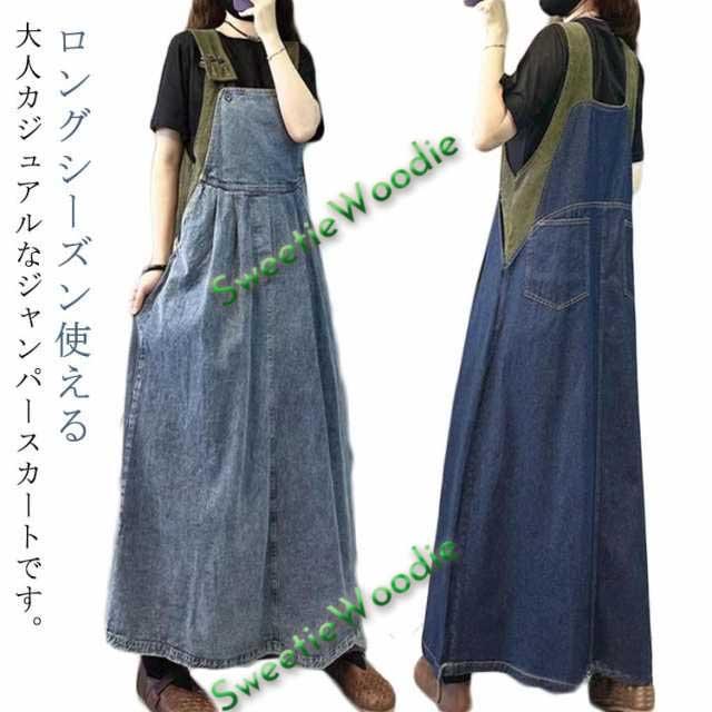 スカート サロペット オールインワン オーバーオール ジャンパースカート レディース 古着風 ジャンスカ つなぎ ロングスカート サロペットスカート ワンピース シンプル アメカジ ストリート系 体型カバー デニム ロングスカート