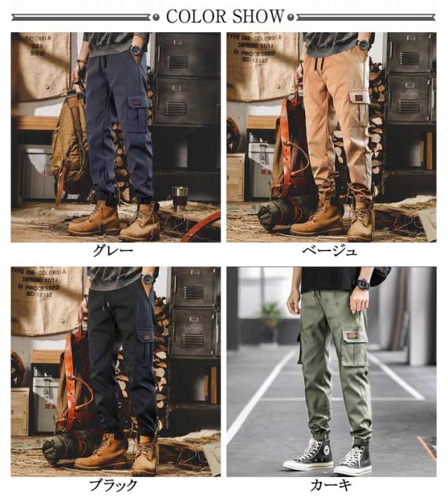 カーゴパンツ パンツ 作業ズボン カーゴパンツ 春 メンズ 長ズボン カーゴジョガーパンツ ワークパンツ ボトムス 作業着 ジョガーパンツ 黒 送料無料 ウエストゴム 無地 裾絞り 大きいサイズ アウトドア 送料無料 秋 ロングパンツ カーキグレー ベージュ 20代