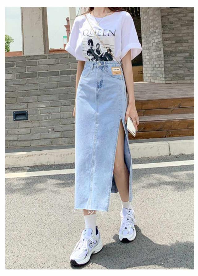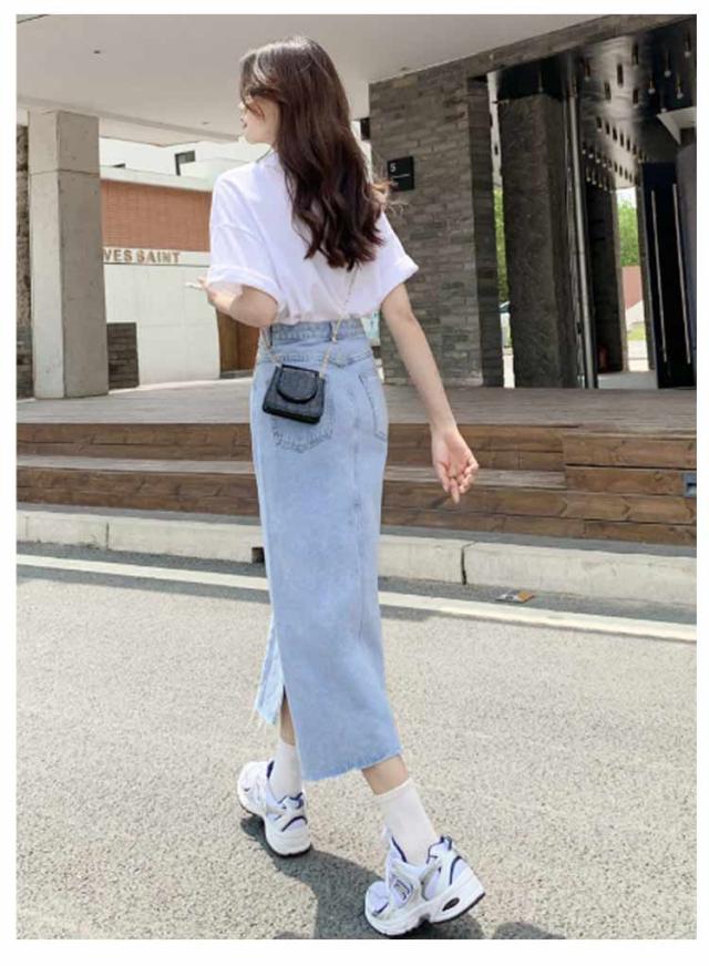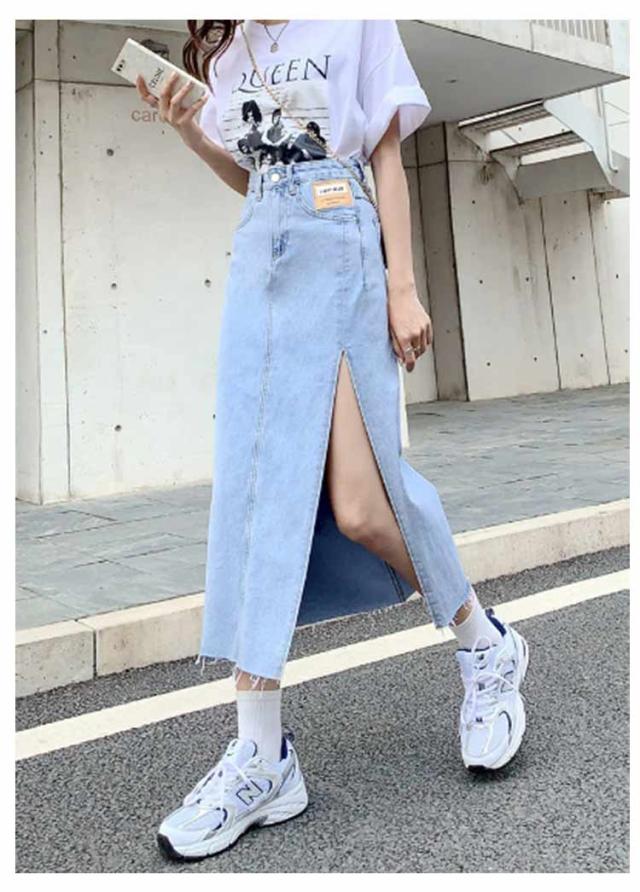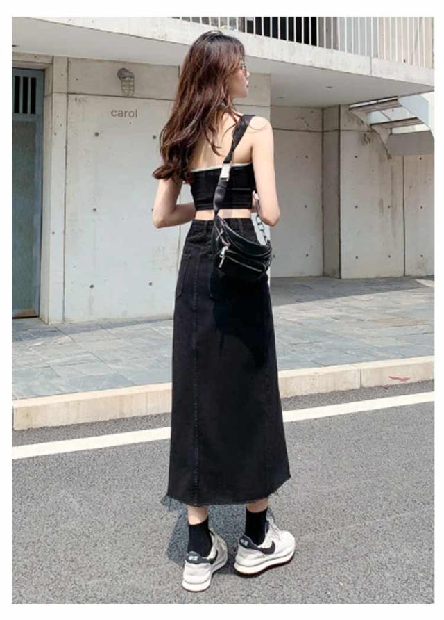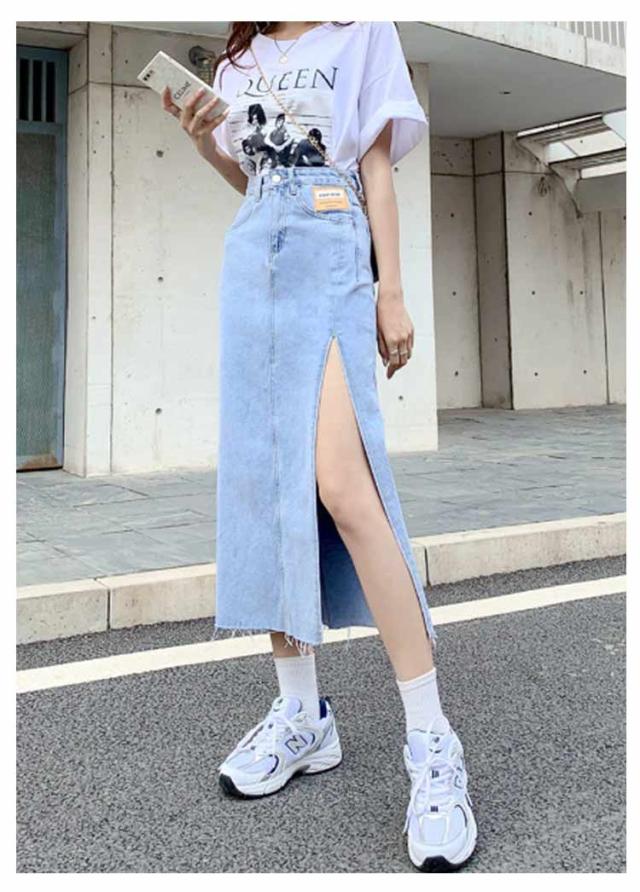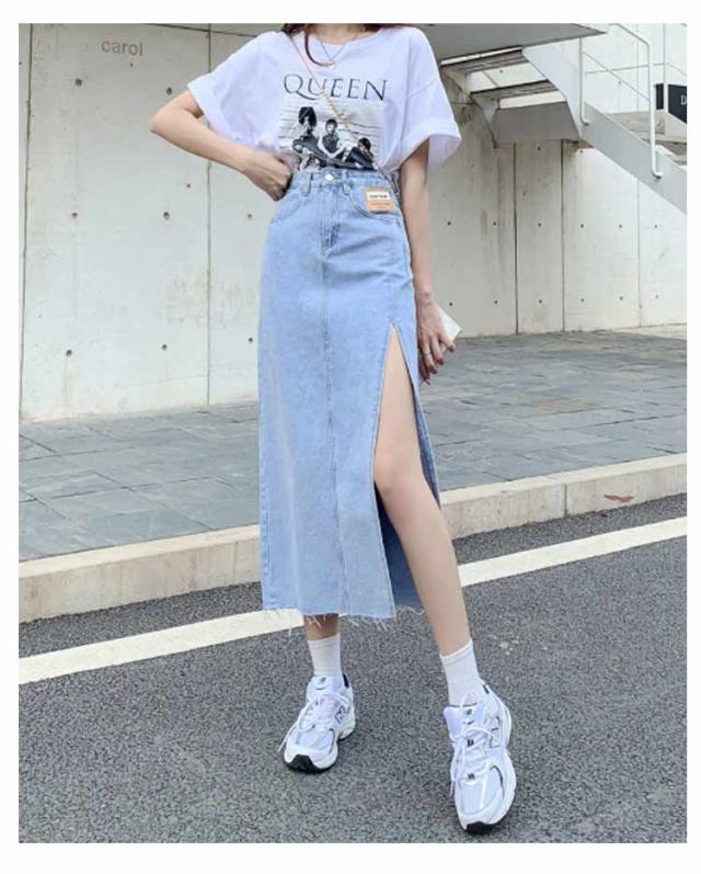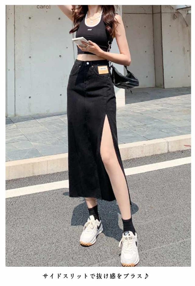 ハイウエスト スカート スリット入り デニム 美脚 着?せ ロング ロング丈 ロングスカート マキシ 脚長効果 膝下 無地 ロングスカート シンプル 大きいサイズ 大人 デニムスカート フレア デニムスカート 女性 可愛い 春夏
