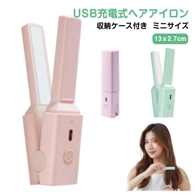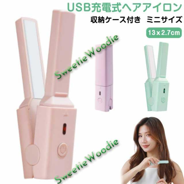 収納ケース付き ヘアアイロン ミニ 充電式 カール ストレート USB 前髪 ヘアーアイロン USB コンパクト ヘアアレンジ アイロン トラベル 超ミニ 軽量 軽い 旅行用 コードレス 海外対応 携帯 ヘアケア 母の日 ヘアアイロン収納