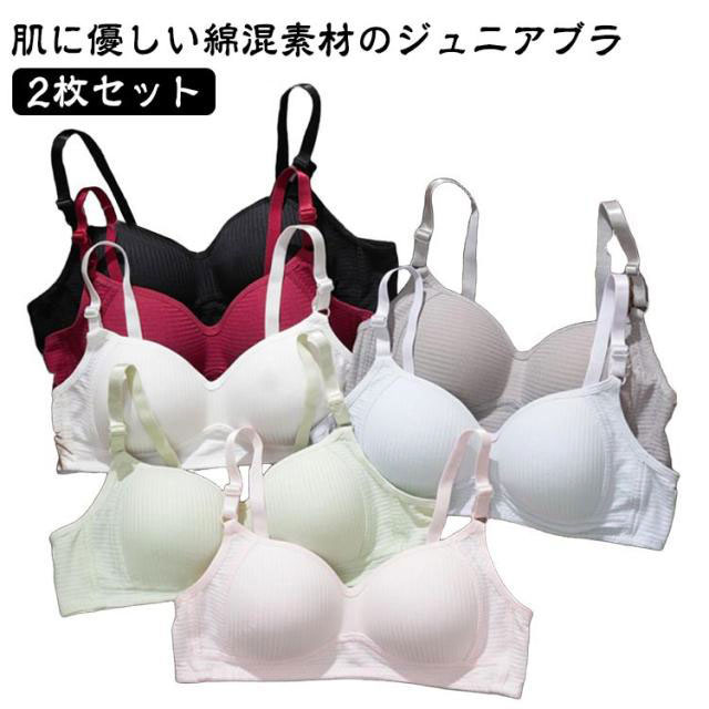 | 肌に優しい綿混素材のジュニアブラ 2枚セット カラダにぴったりフィット設計 ノンワイヤーだから楽ちん 汗を吸ってもすぐ乾いてサラサラ 肩紐ストラップは長さ調整可能 | |