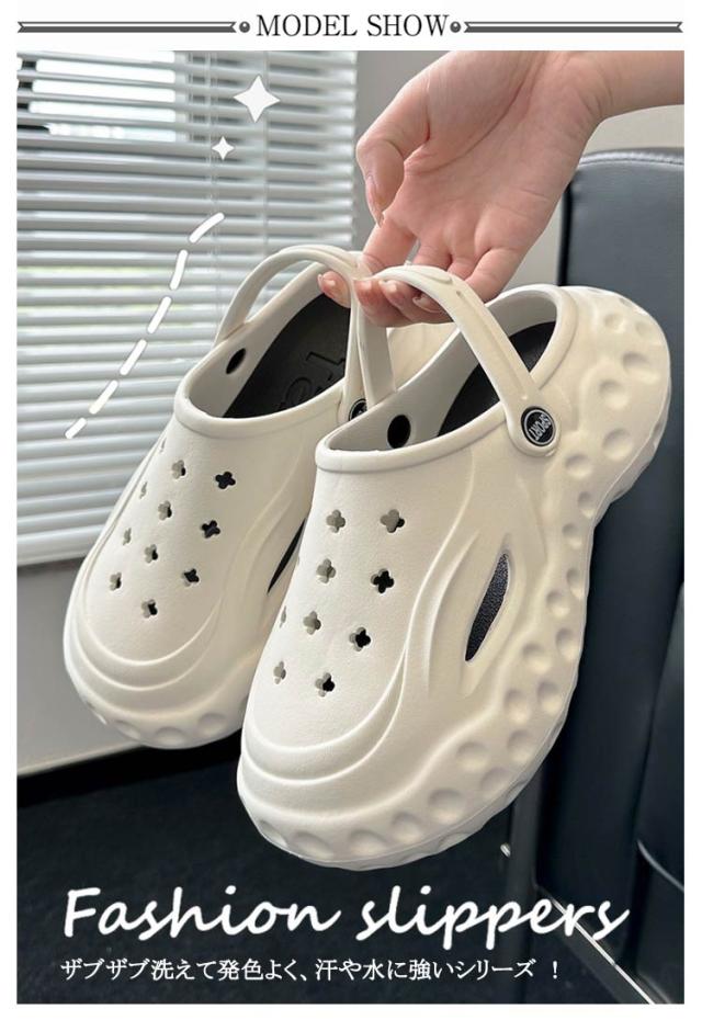 | 超ソフトな履き心地でブームになったEVAシューズ。 ザブザブ洗えて発色よく、汗や水に強いシリーズ ! 足に心地良いクッション素材! ベルトを前に倒せばサボにもなる。 | |