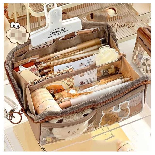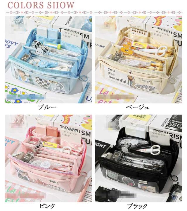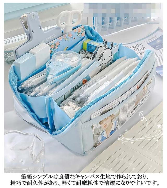 | 外側の透明ポケット部分にまでたっぷり収納できる、大容量ペンケース! トレンドの韓国っぽさたっぷりで可愛いペンケース 筆箱シンプルは良質なキャンバス生地で作られており、精巧で耐久性があり、軽くて耐摩耗性で清潔になりやすいです しっかりとした生地と豊富カラーがおしゃれ! ペンなどの文房具やメイクブラシなど収納できます | |