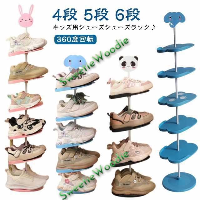 シューズラック 360度回転 5段 6段 靴箱 4段 キッズ 子ども用シューズラック 省スペース 靴 スリム シューズ収納 収納ラック 玄関収納 子供靴 シューズラック キッズ用 子供用 シューズボックス アニマル 動物 パンダ ウサギ 象 靴入れ おしゃれ