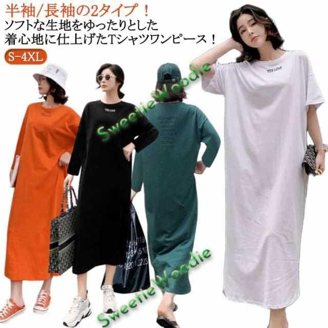 ロング リブ 大きいサイズ ワンピース レディース ワンピ 長袖 ワンピース レイヤード Tシャツワンピース ロングワンピース Tシャツ ビッグ ロンT マキシワンピ ロングワンピ 大人 体型カバー 春