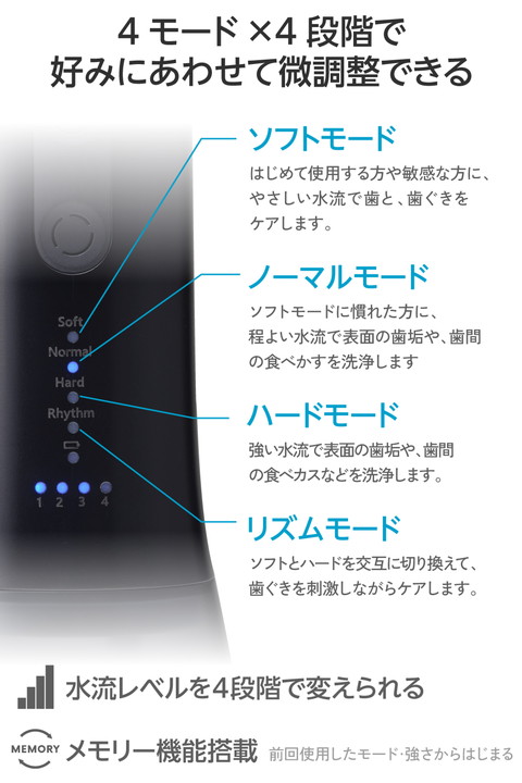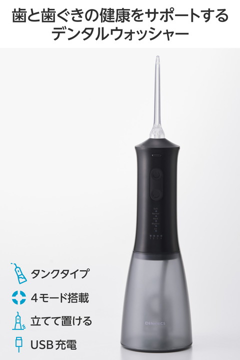 エレコム デンタルウォッシャー DENTNICS 据え置きタイプ リチウムイオン電池 4モード IPX7 メモリー機能搭載 ブラック ┃HC-JF03BK
