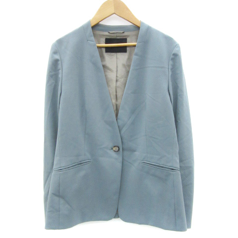 【中古】グリーンレーベルリラクシング ユナイテッドアローズ ノーカラージャケット ミドル丈 40 L 水色 レディース