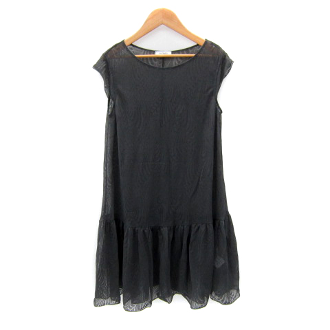 【中古】マックス&コー ワンピース ひざ丈 フレンチスリーブ 総柄 シースルー S チャコールグレー /SY44 レディース