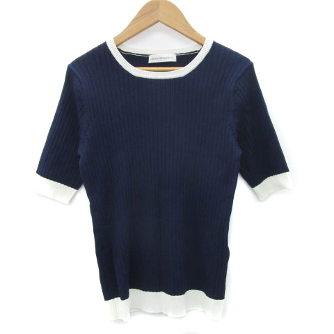 【中古】アーバンリサーチ URBAN RESEARCH リブニット カットソー 半袖 F ネイビー 紺 /YM21 レディース