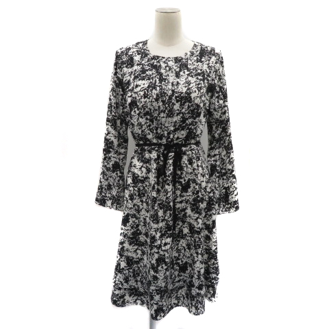 【中古】スチェッソ SUTSESO ワンピース ミニ丈 長袖 ウエストリボン 総柄 40 L 黒 ブラック /YK25 レディース