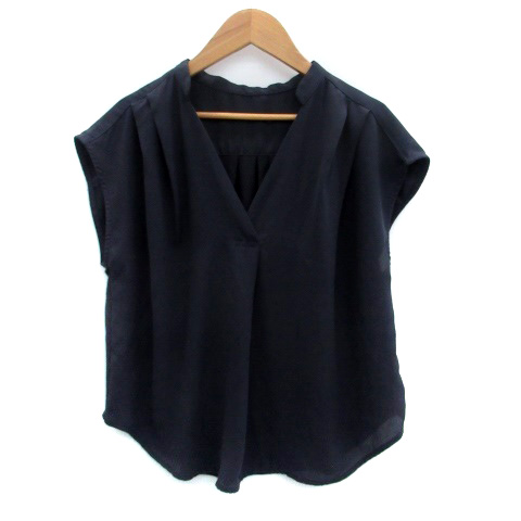 【中古】ビス ViS ブラウス カットソー スリットネック フレンチスリーブ 切替 M 紺 ネイビー