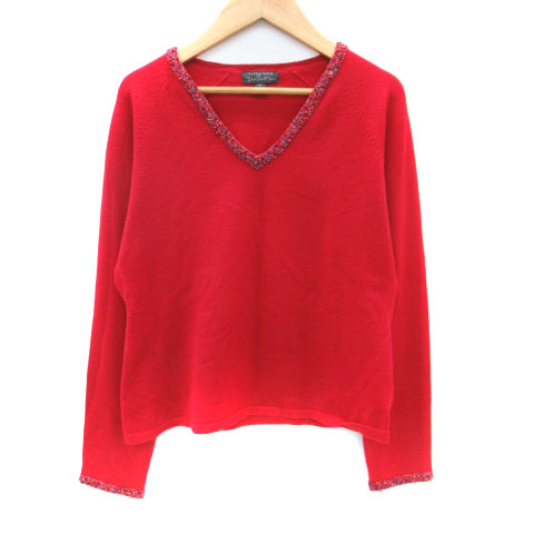 【中古】クラシックアンティエ ニット セーター 長袖 Vネック ビーズ メリノウール M 赤 レッド /SM9 レディース