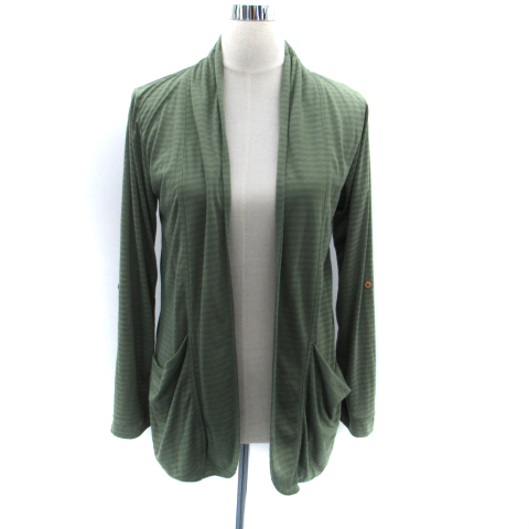 【中古】サンカンシオン 3can4on カーディガン 前開き ミドル丈 ショールカラー ボーダー柄 3 カーキ レディース