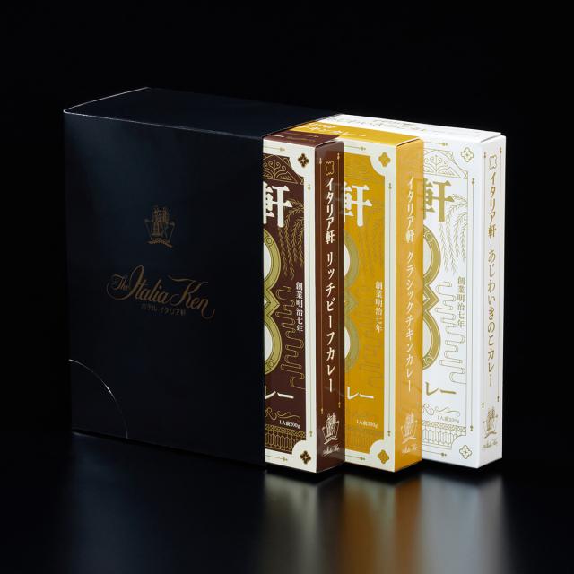 【数量・内容】イタリア軒リッチビーフカレー、イタリア軒クラシックチキンカレー、イタリア軒あじわいきのこカレー 各200g