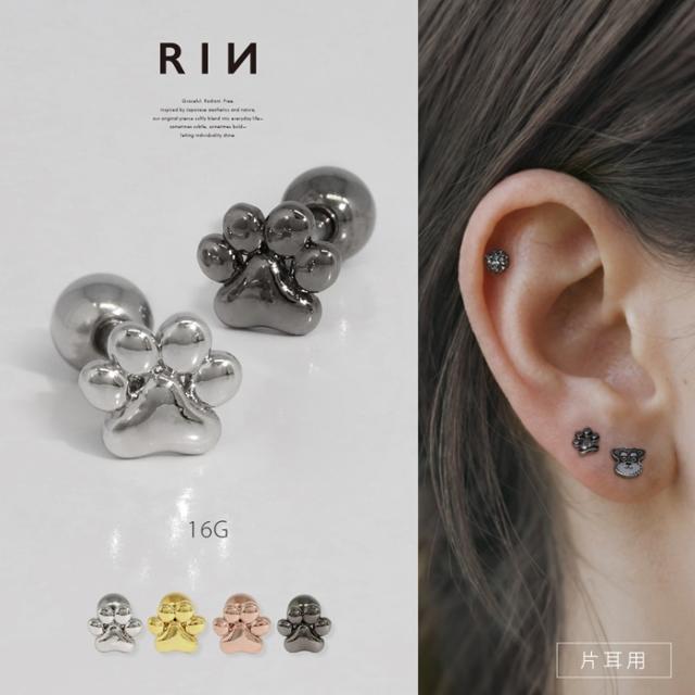 16G 肉球 動物 犬 猫 paw あしあと にくきゅう ストレートバーベル 片耳用 軟骨1540 t9972-011