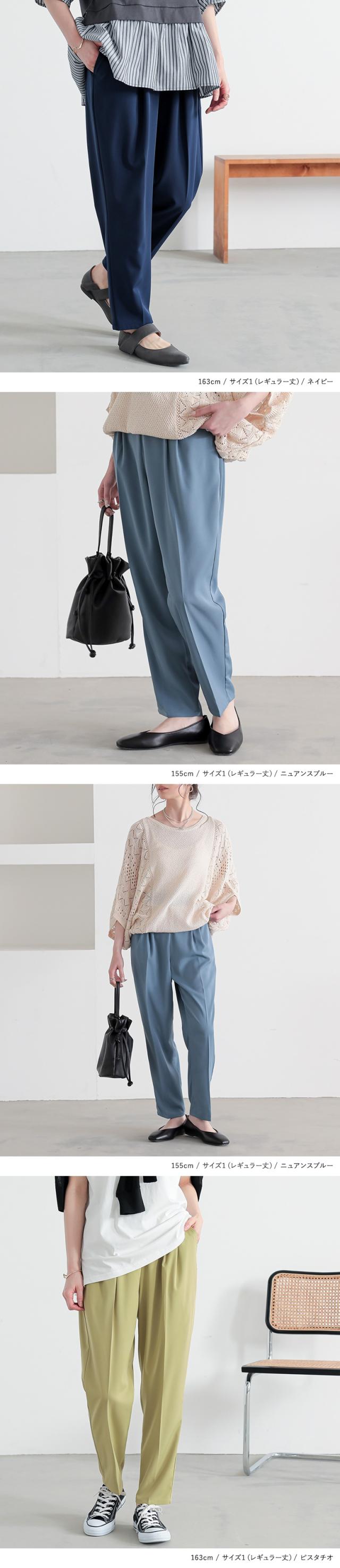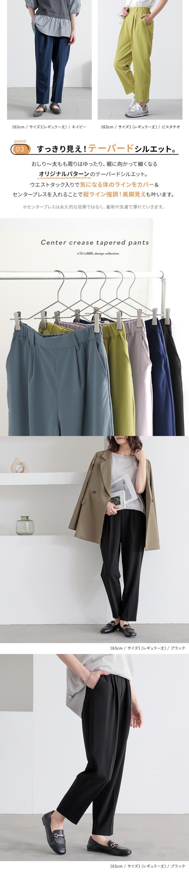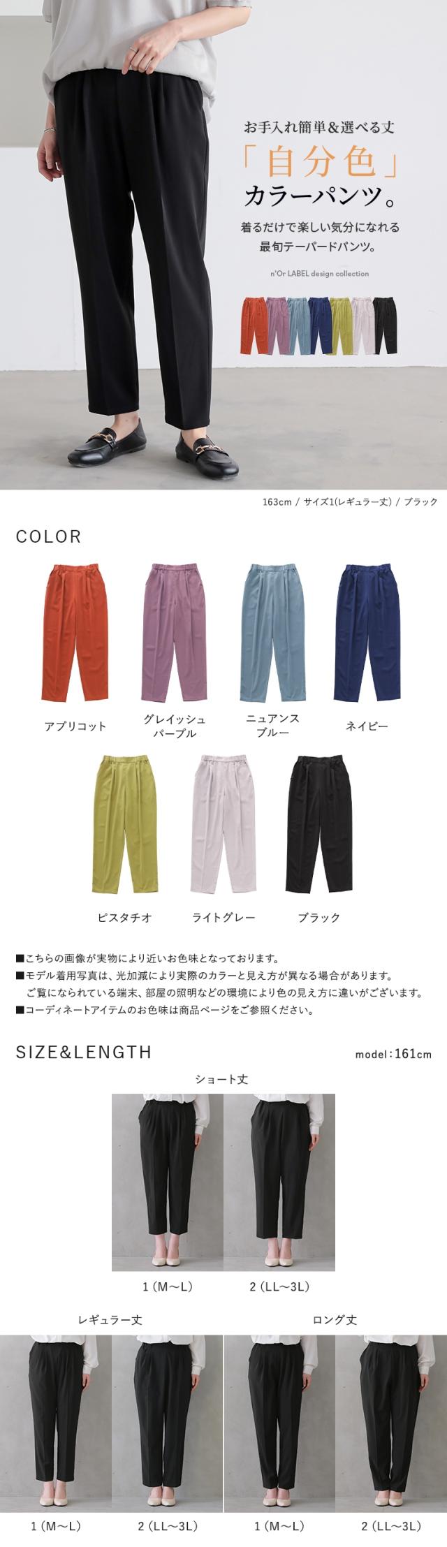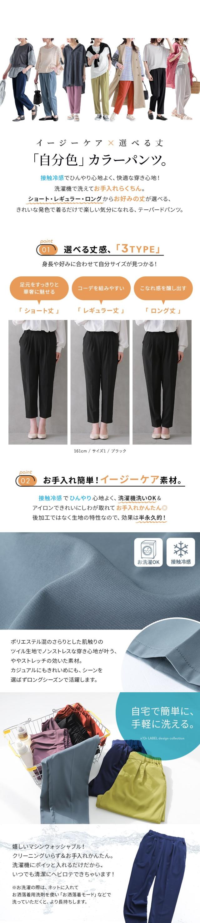 レディース ボトムス パンツ テーパードパンツ カラーパンツ クロップド丈 レギュラー丈 ロング丈 無地 おうちで洗える イージーケア 接触冷感 n'OrLABEL ノア—ルレーベル 選べる着丈シリーズ ブルー 青 水色 紺 ネイビー グリーン 緑 オレンジ パープル 紫 ブラック 黒 グレー 灰色 【パンツ】[ID]pjn0151