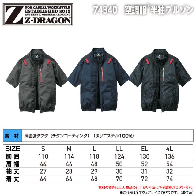 空調服 自重堂 Z-DRAGON ジードラゴン 作業服 春夏 74340 半袖ブルゾン 4L 単品 作業着