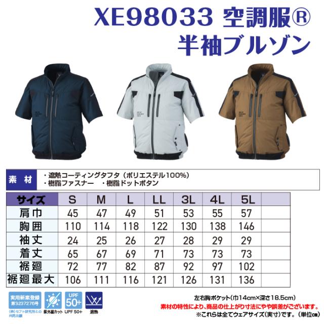 空調服 ジーベック XEBEC 作業服 春夏 XE98033 半袖ブルゾン 3L 単品 作業着