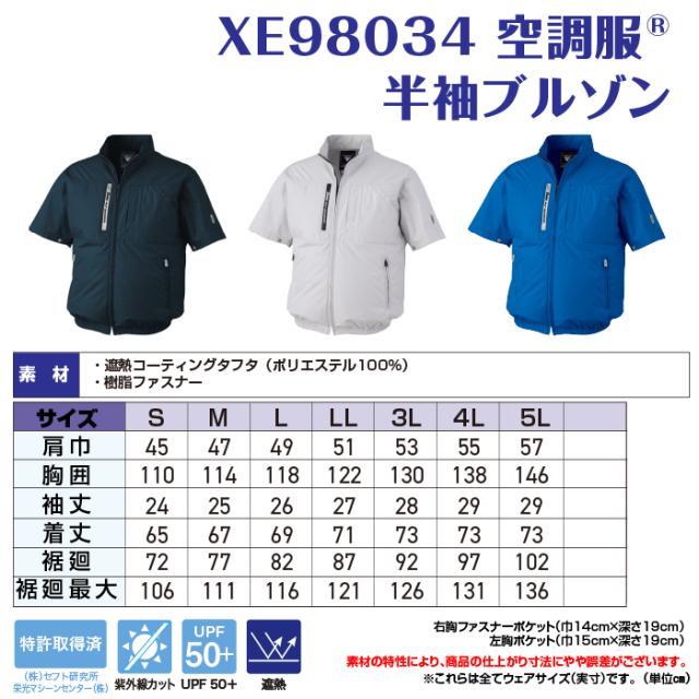空調服 ジーベック XEBEC 作業服 春夏 XE98034 半袖ブルゾン 4L-5L 単品 作業着