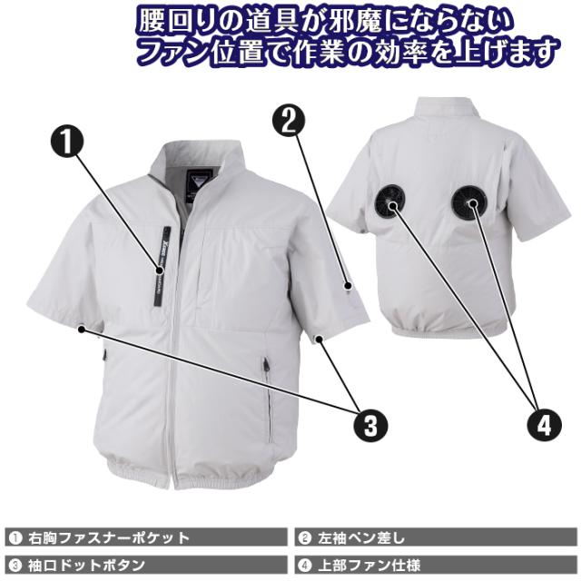 ◇機能:腰回りの干渉を軽減した上部ファン仕様・紫外線カット・UPF50+・遮熱・左袖ペン差しに反射ネーム付き・左右胸ファスナーポケット・両脇ファスナーポケット・左内側バッテリーポケット・首元の調整ヒモで空気の抜けを調節