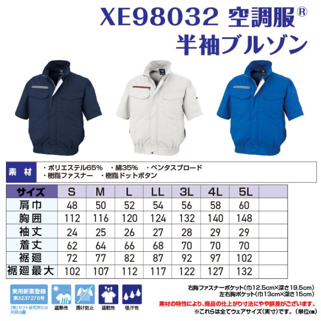 空調服 ジーベック XEBEC 作業服 春夏 XE98032 半袖ブルゾン S-5L 単品 作業着