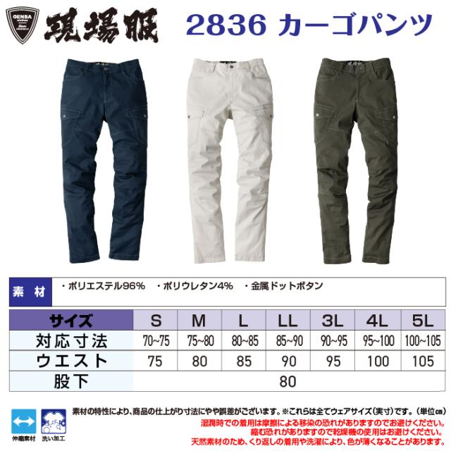 ジーベック XEBEC 作業服 春夏 2836 カーゴパンツ S-LL 作業ズボン 作業着