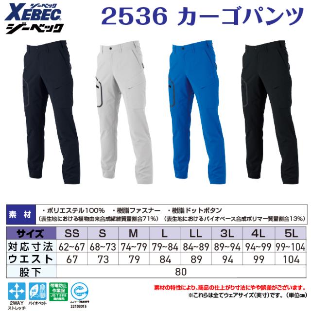 ジーベック XEBEC 作業服 春夏 2536 カーゴパンツ 4L-5L 作業ズボン 作業着
