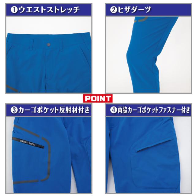 ◇機能:2WAYストレッチ・バイオペット・帯電防止・男女兼用・ウエストストレッチで快適な履き心地・ヒザダーツで曲げやすい・前中心は3YGファスナー・両脇Dカンループ付・右脇カーゴポケット反射材付・両脇カーゴポケットファスナー付・右後ろポケットはファスナー仕様でモノが落ちにくい・後ろポケットが脇寄りでモノが入れやすい