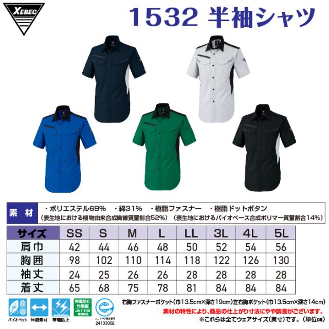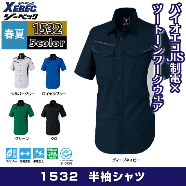 ジーベック XEBEC 作業服 春夏 1532 半袖シャツ 4L-5L 作業着
