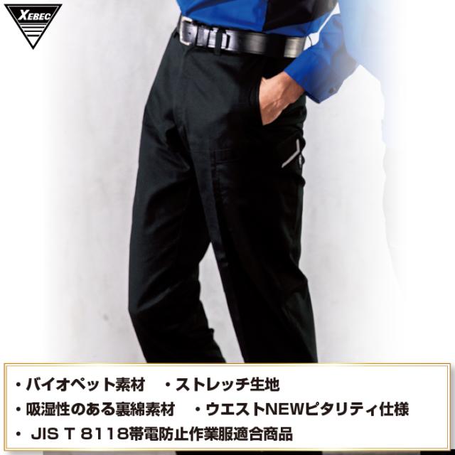 ◇機能:バイオペット・伸縮素材・帯電防止・男女兼用・NEWピタリティ・JIS T8118帯電防止作業服適合商品・ストレッチ生地・前中心は丈夫な3YGファスナー・ウエストNEWピタリティ仕様・右脇横ポケットはファスナー仕様・左脇横ポケットはペン差し付き・左脇横フラップに反射プリント入り