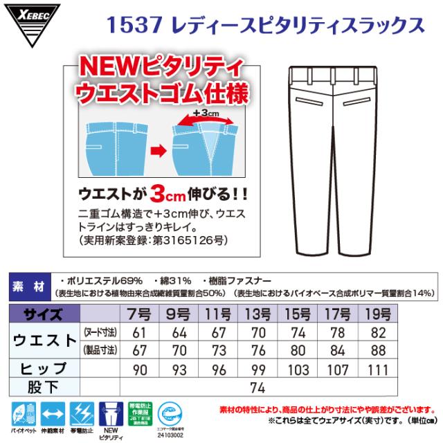 ジーベック XEBEC 作業服 春夏 1537 レディースピタリティスラックス 17号-19号 作業ズボン 作業着