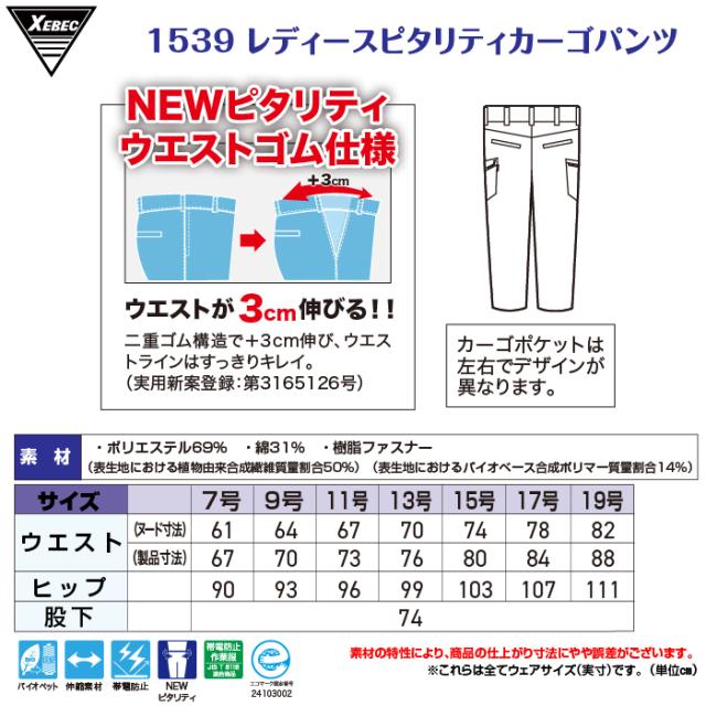 ジーベック XEBEC 作業服 春夏 1539 レディースピタリティカーゴパンツ 17号-19号 作業ズボン 作業着