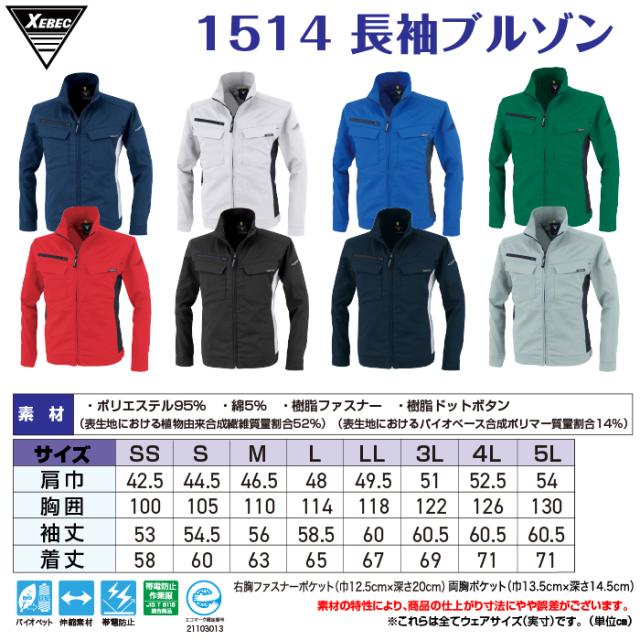 ジーベック XEBEC 作業服 春夏 1514 長袖ブルゾン SS-LL 作業着