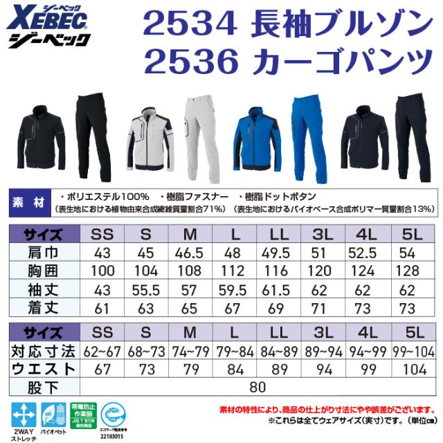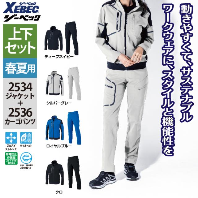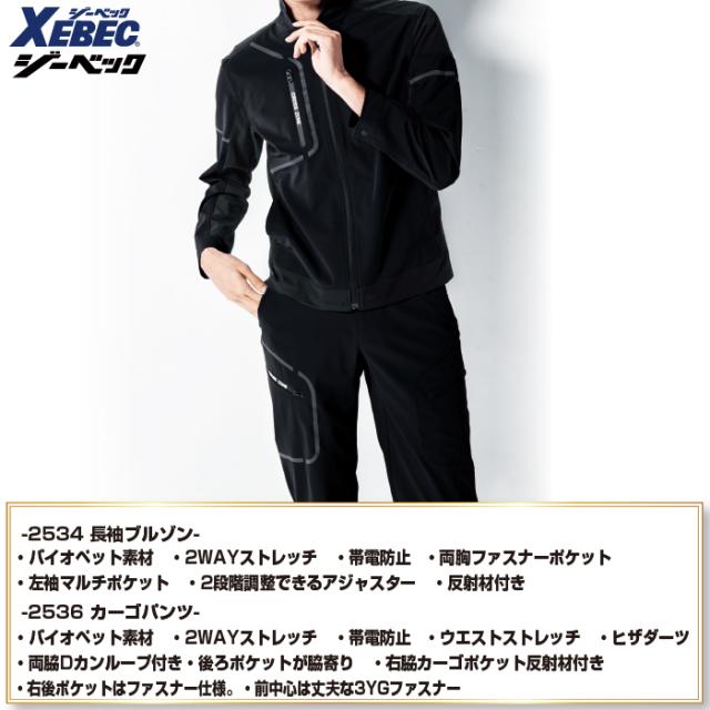 ジーベック XEBEC 作業服 上下セット 春夏 2534 長袖ブルゾンS-3L と 2536 カーゴパンツ S-3L 作業ズボン 作業着
