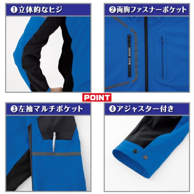 ◇機能:2WAYストレッチ・バイオペット・帯電防止・男女兼用・立体的なヒジの設計でさらに動きやすく・両脇ファスナーポケット・左袖マルチポケット・袖口は2段階に調整できるアジャスター付き・左胸 後裾 袖山に反射材付き