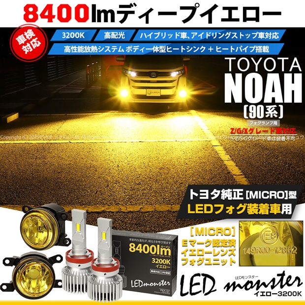 トヨタ ノア (90系 Z/G/Xグレード) 対応 H11 led MICRO LED MONSTER L8400 イエローガラスレンズフォグランプキット 8400lm 黄色 44-H-5
