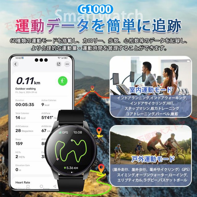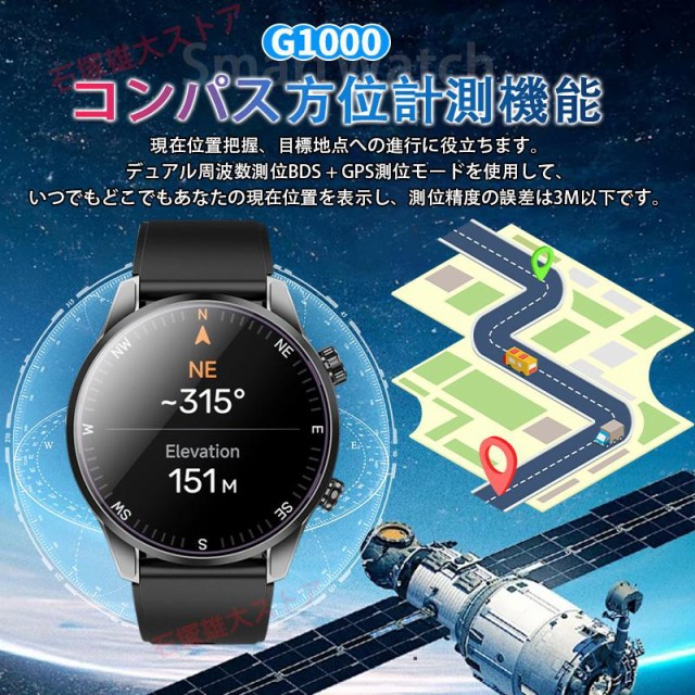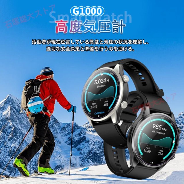 スマートウォッチ 通話機能 BDS+GPS搭載 高精度測位 心拍数 酸素飽和度 圧力測定 呼吸訓練 HRV評価 運動データ 天気 気圧高度計 活動量計 音楽再生 SOS機能 登山