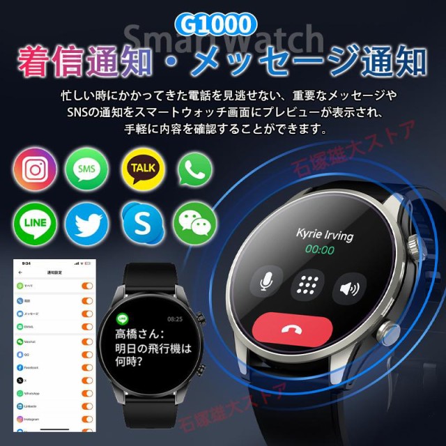 スマートウォッチには最新のBluetooth 5.3テクノロジーが搭載されており、安定性とエネルギー効率が大幅に向上しています。Bluetooth接続後、同期モバイル通信をサポートし、通話記録を保存できます。運動中に簡単に電話に出ることができます。最も重要なことは、いつでも時計を通じて自分の情報を確認できることです。Android 5.0/ IOS 10.0 システムのスマートフォンと簡単にマッチングできます。音声アシスタントにも対応しているので、スマホを取り出さなくてもスマートウォッチの音声アシスタント画面から電話をかけることができます。
