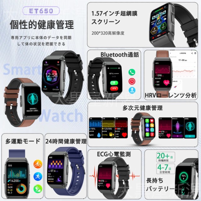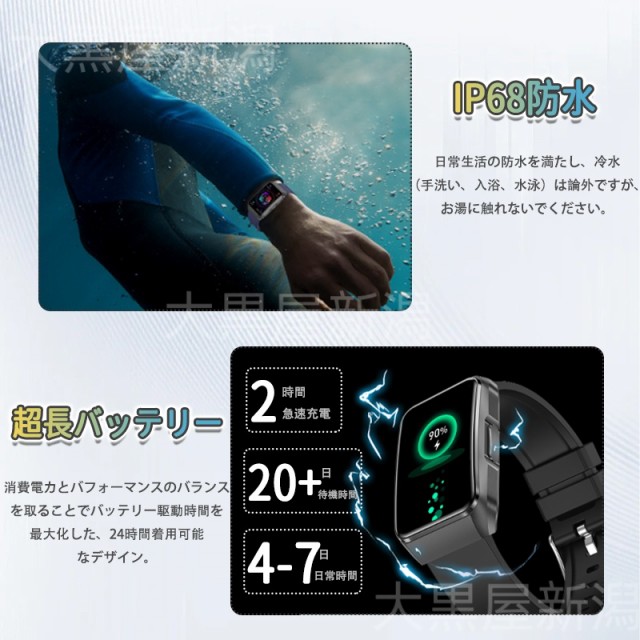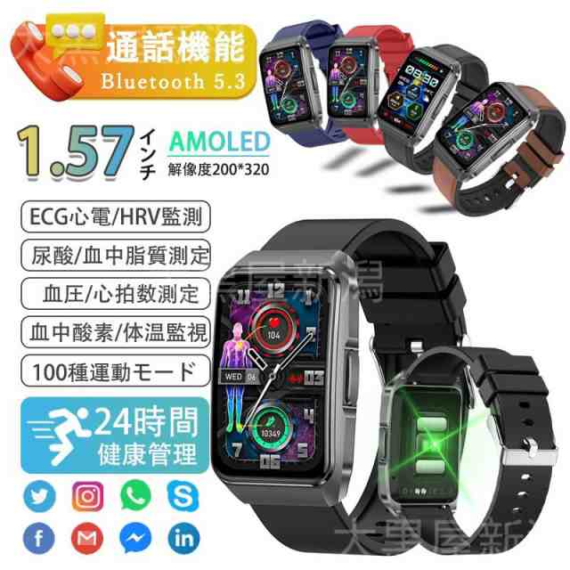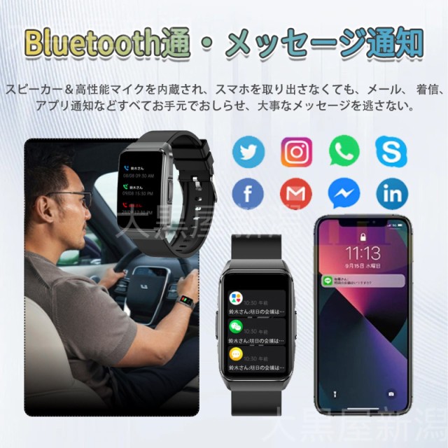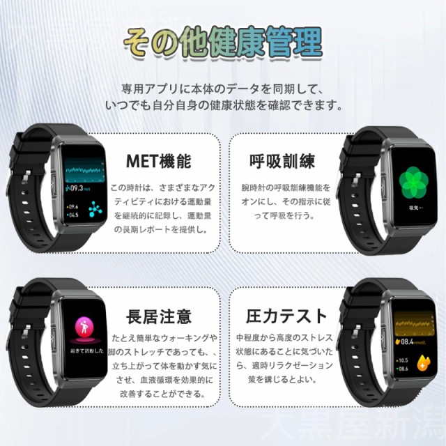 スマートウォッチ 日本製センサー 医療レベル心電図ECG+PPG 血糖値 血圧 血中酸素 体温測定 高精度心拍数 睡眠管理 呼吸率 歩数計 Line着信通知 iphone/Android
