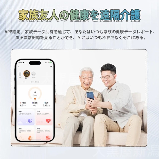 体温、血中酸素、血圧や心拍数などの測定機能を一瞬で確認でき、スマホと同期した後アプリで健康状態データを一目で分かります。