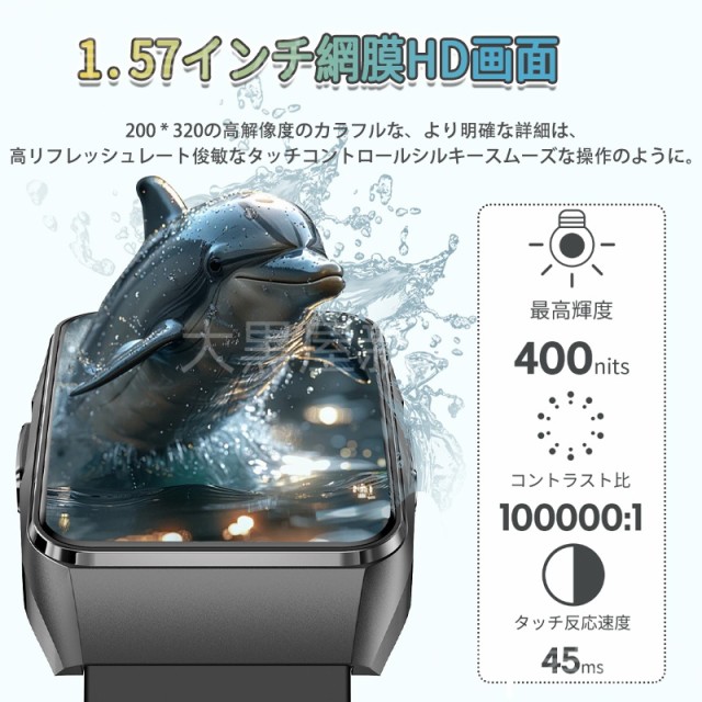 【DIY文字盤&多機能を搭載】- スマートウォッチの文字盤は固定ではありません。多くの文字盤から選べるだけではなく、お好みによって自分が好きな写真を文字盤に設定できます。 200* 320の高解像度と1.57インチのフルタッチスクリーンで、細かい文字でもはっきりと表示されます。他にも音楽コントロール、携帯を探す、腕上げ点灯、タイマー、ストップウォッチ、データ同期、女性生理管理など便利な機能を備えているので、男性でも女性でも使いやすいです!!生活、仕事の効率をさらに上げ、日常生活もより便利にしてくれます。