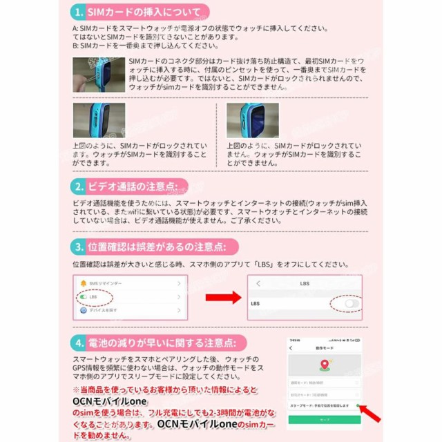 その他の機能:カメラ、SOS緊急通話、問い合わせ、双方向通話+APPビデオ通話、電子フェンス、幼児教育、メッセージリマインダー