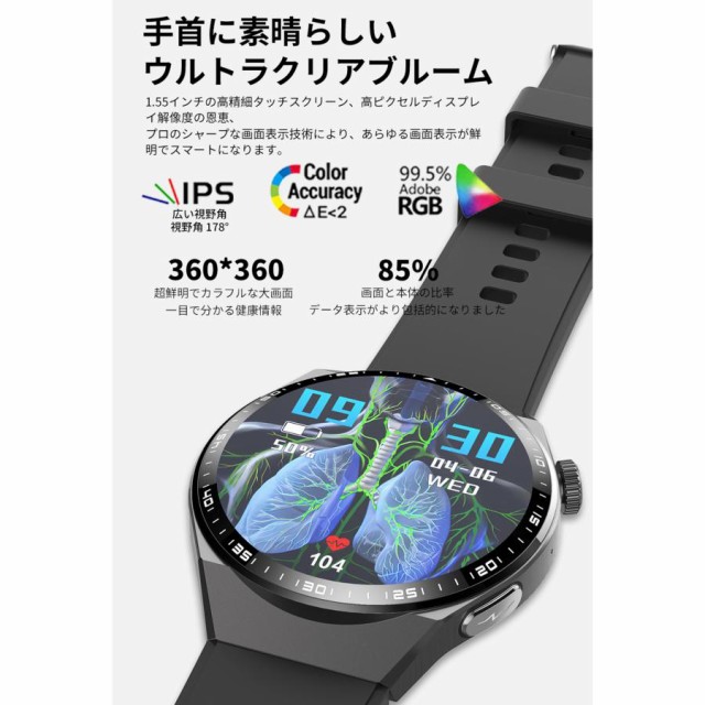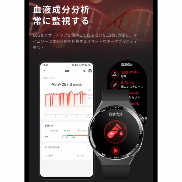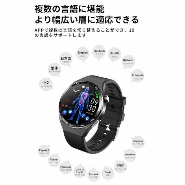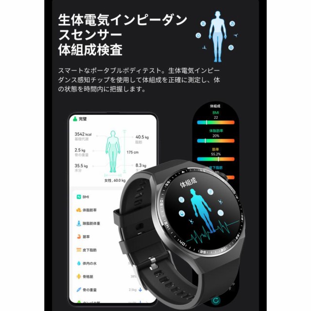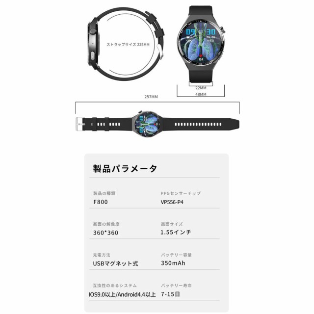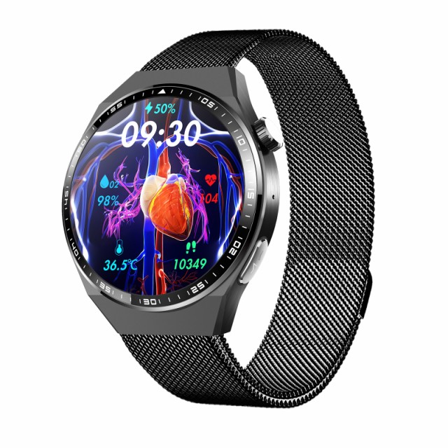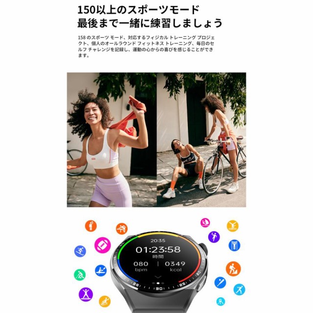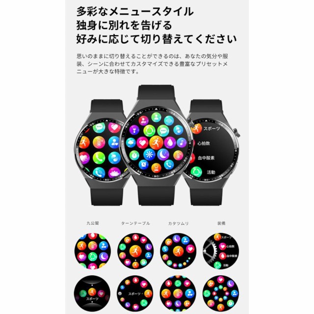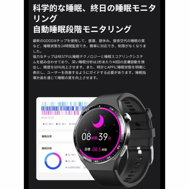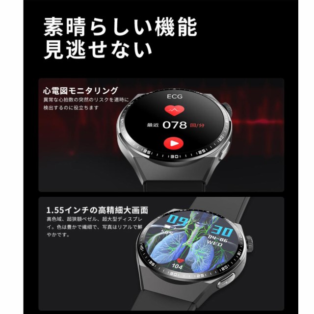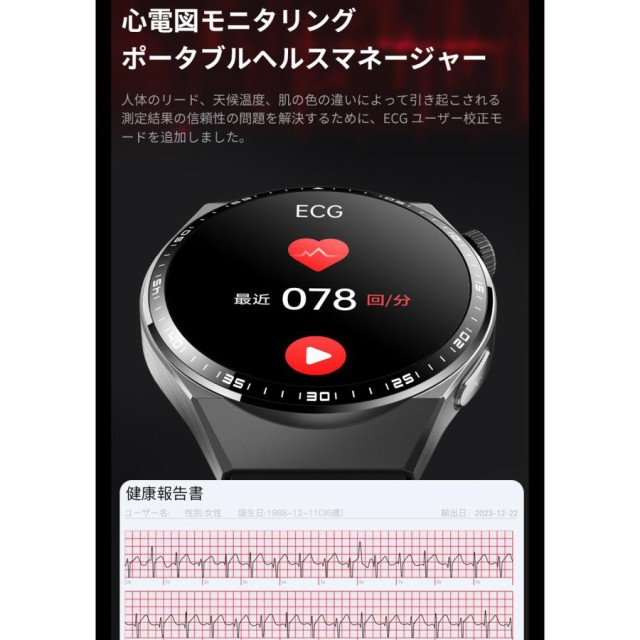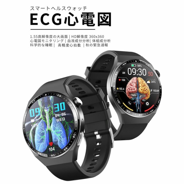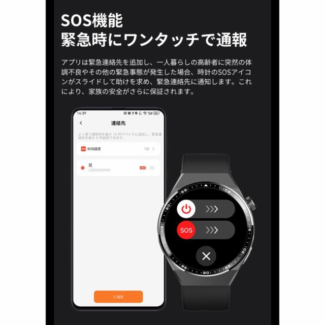 「SOS機能」スマートウォッチ 心電図測定ECG 血圧測定 通話機能 着信通知 心拍数 血中酸素 歩数計 睡眠 体温 呼吸訓練 音楽 目覚まし時計 天気表示 カメラ制御