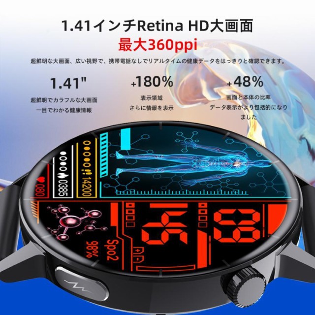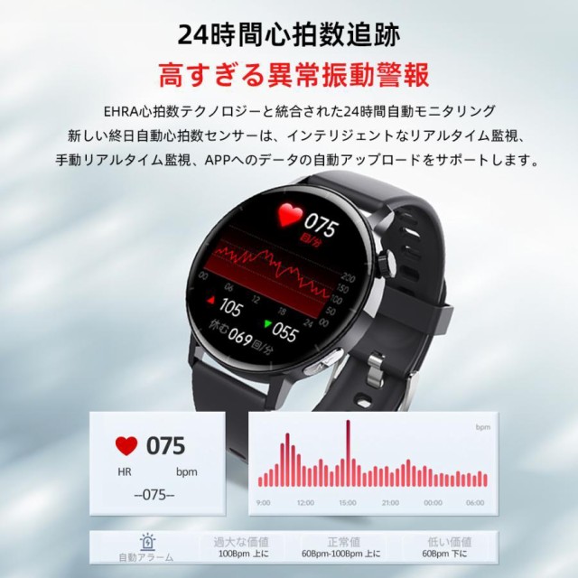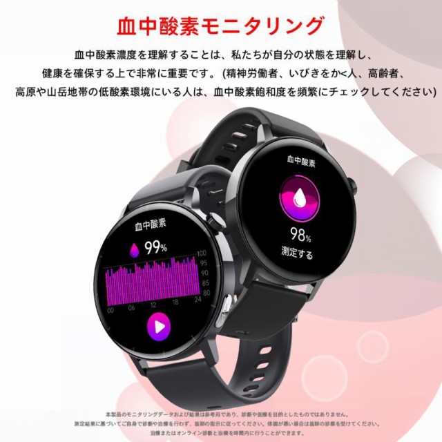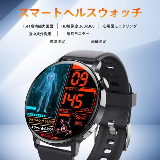 スマートウォッチ 日本製センサー 通話機能 血糖血圧測定 ECG心電図 心拍数 着信通知 健康管理 24時間体温監視 血中酸素 睡眠管理 IP67防水 iPhone/Android対応