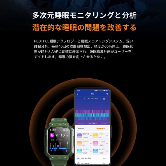 スマートウォッチ 軍用規格 日本製センサー 通話機能 皮膚温 心拍数 血中酸素 睡眠管理 多機能測定 2025年 大画面 通話可能 着信通知 IP68防水 目覚まし時計